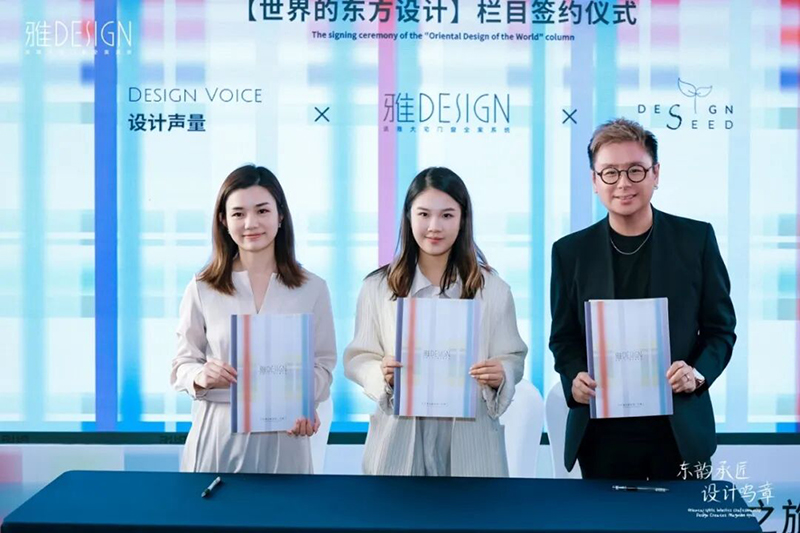 同期,雅DESIGN与Design Seed、Dseign Voice正式签约,未来将用设计的视角解读文化,用媒体的力量传播匠心,携手打造《世界的东方》设计栏目,助力东方文化走向世界。